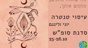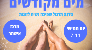 מוזמנות ומוזמנים לסדנת ״מים מקודשים״ – סדנת תרגול שפיכה נשית לזוגות! אחרי עשרות סדנאות לנשים וכמה לגברים, אני מזמינה זוגות סקרנים לסדנה של 4 שעות כדי ללמוד ולהרחיב את הידע שלכםן בשפיכה נשית ומיניות נשית. בחלק הראשון – נלמד יחד על שפיכה נשית- אספר את הסיפור שלי, נלמד גם את …